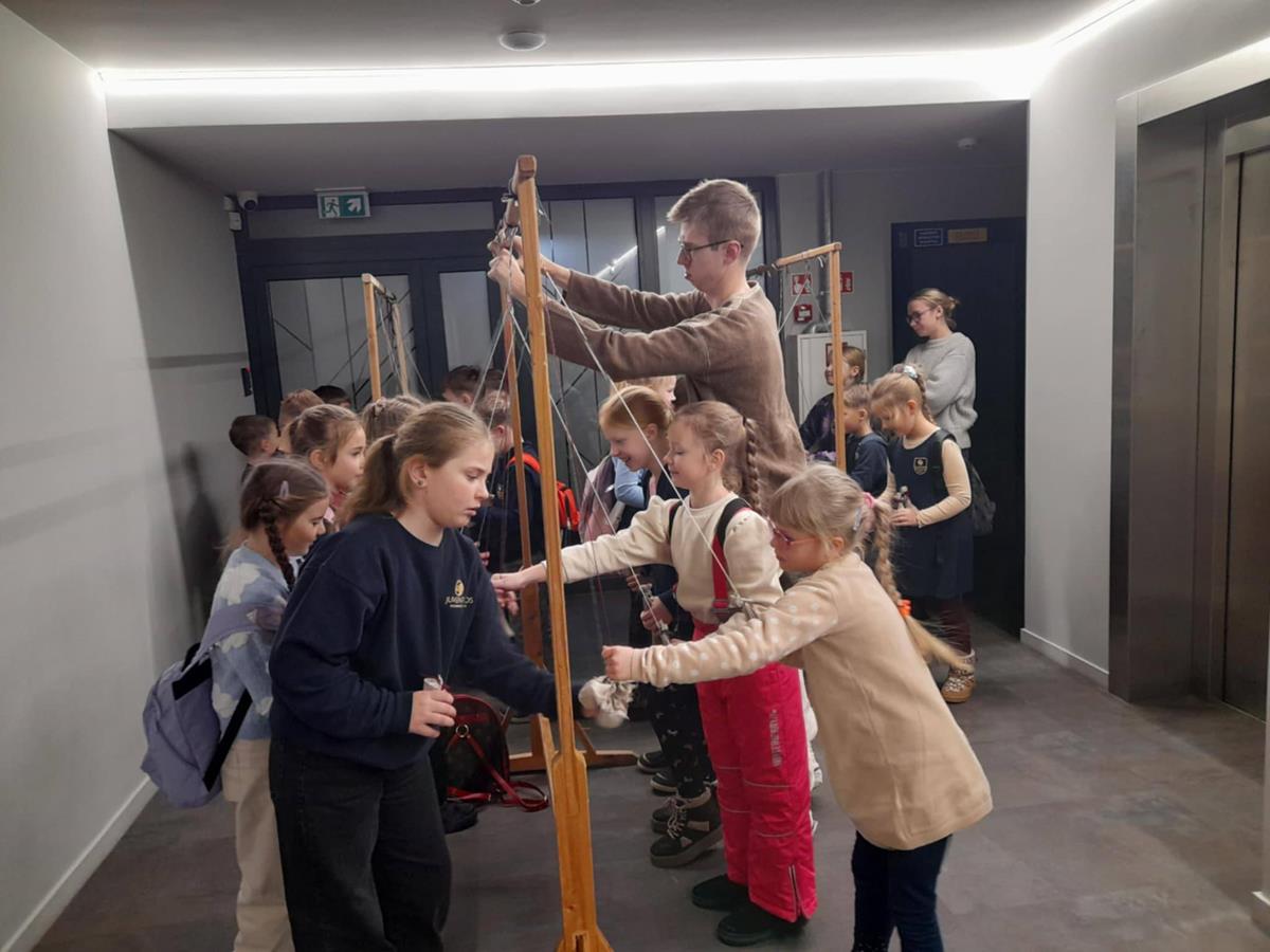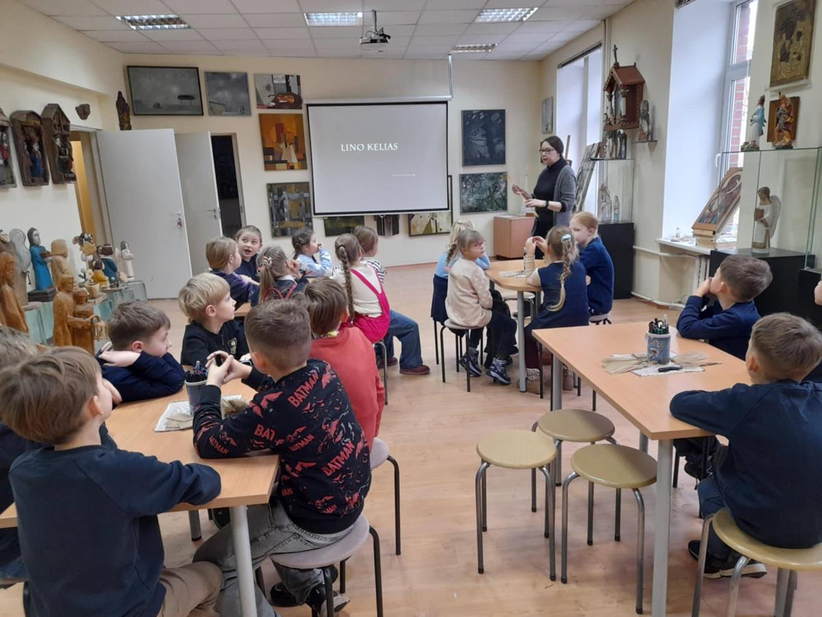 Kita antradienio stotelė – „Angelo muziejus”. Čia antrokai sužinojo, kaip apdirbami linai, iš lino pluošto gamino angelus, kurie papuoš kalėdines eglutes.