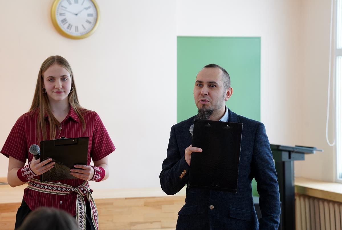 Žaismingai ir prasmingai istorinius įvykius primindami renginį vedė istorijos mokytojas, skautas Sergejus Staponkus ir jo auklėtinė Miglė Poškevičiūtė, kviesdami puoselėti laisvės vertę, ją įprasminti kasdieniais darbais.