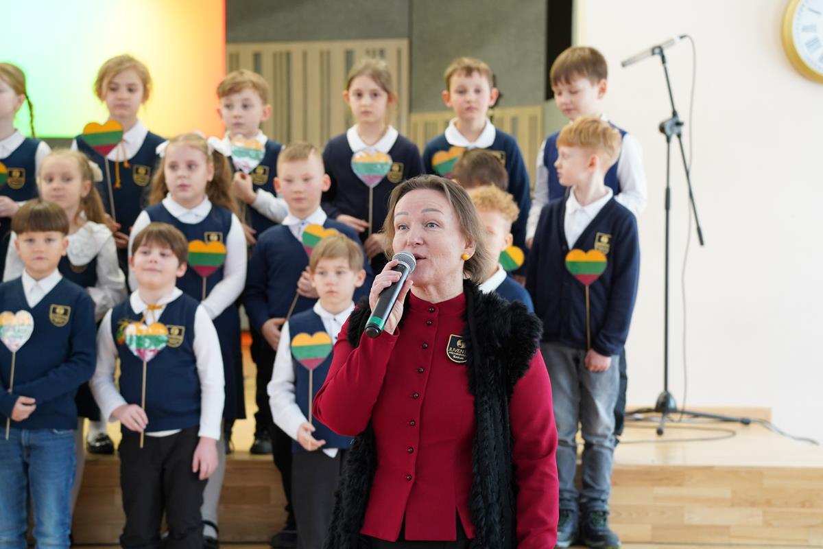 8.10 val. mokyklos bendruomenė iškilmingai sugiedojo Lietuvos valstybės himną, susiburdama bendram pilietinės vienybės ir atsakomybės už savo šalį momentui.