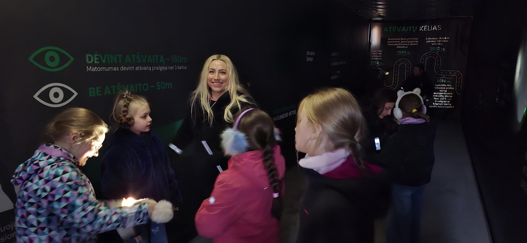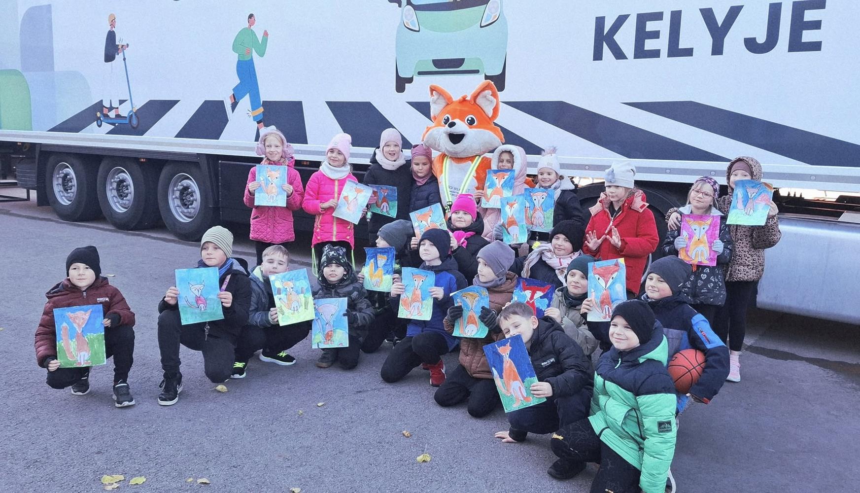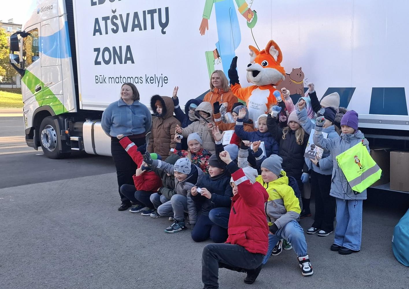 Su dideliu smalsumu vaikai lankėsi ne tik vilkiko kabinoje, bet ir puspriekabėje, kurioje buvo įrengta atšvaitų zona. Čia pradinukai įsitikino, kaip atšvaitai veikia tamsoje, gavo dovanų po atšvaitą ir sužinojo, kaip taisyklingai jį užsidėti.