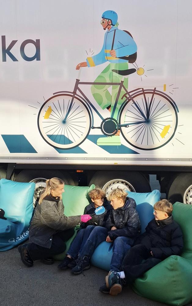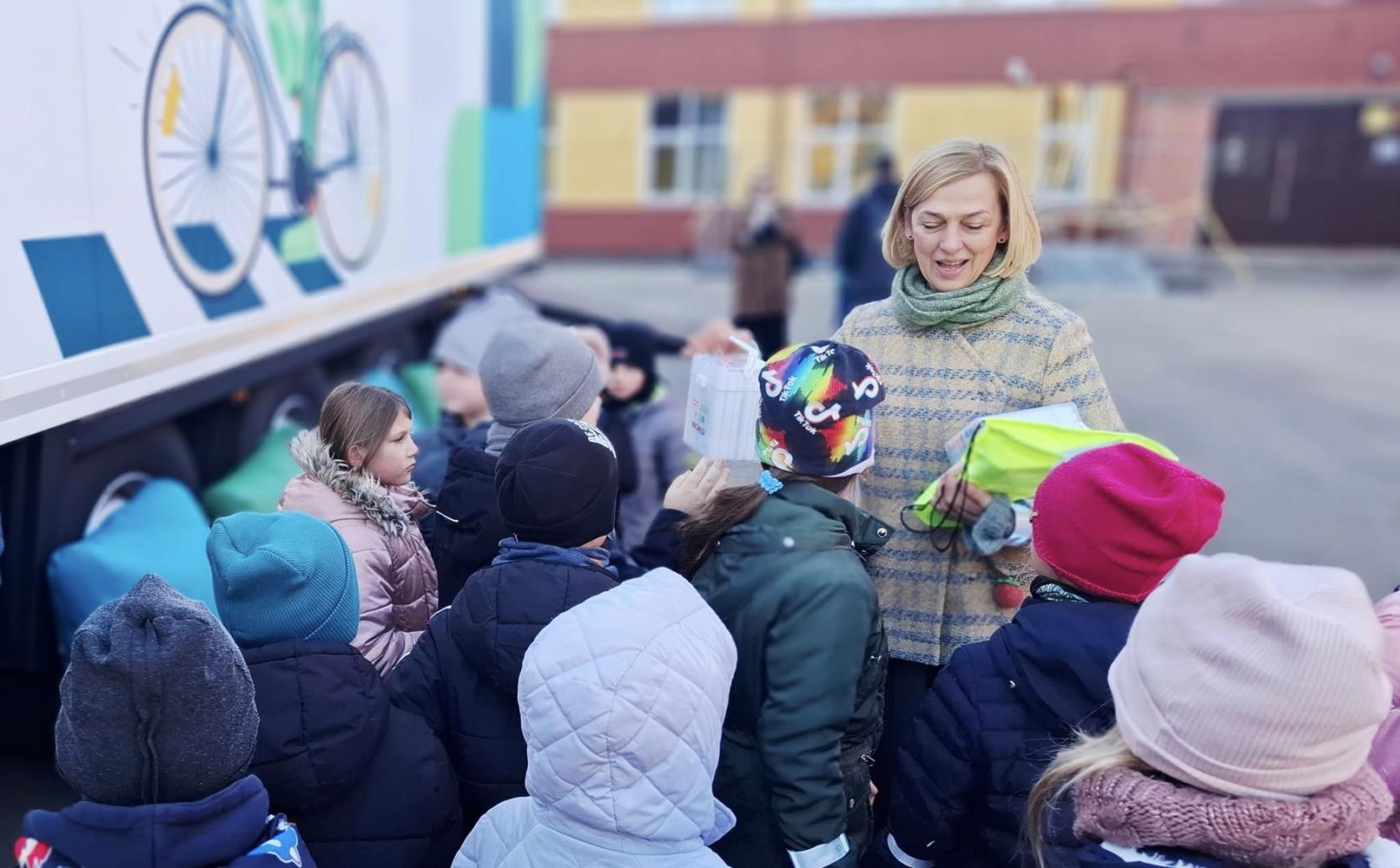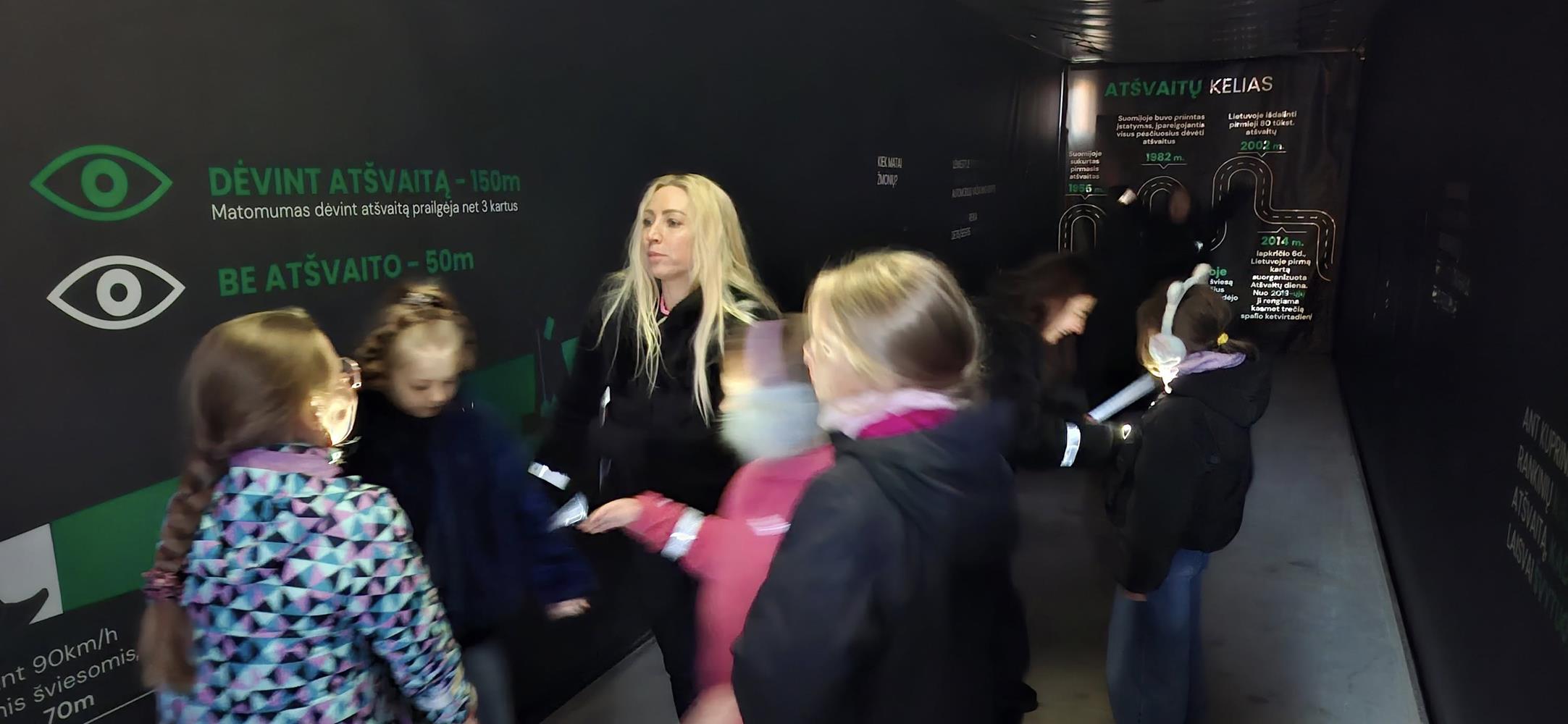 Su dideliu smalsumu vaikai lankėsi ne tik vilkiko kabinoje, bet ir puspriekabėje, kurioje buvo įrengta atšvaitų zona. Čia pradinukai įsitikino, kaip atšvaitai veikia tamsoje, gavo dovanų po atšvaitą ir sužinojo, kaip taisyklingai jį užsidėti.