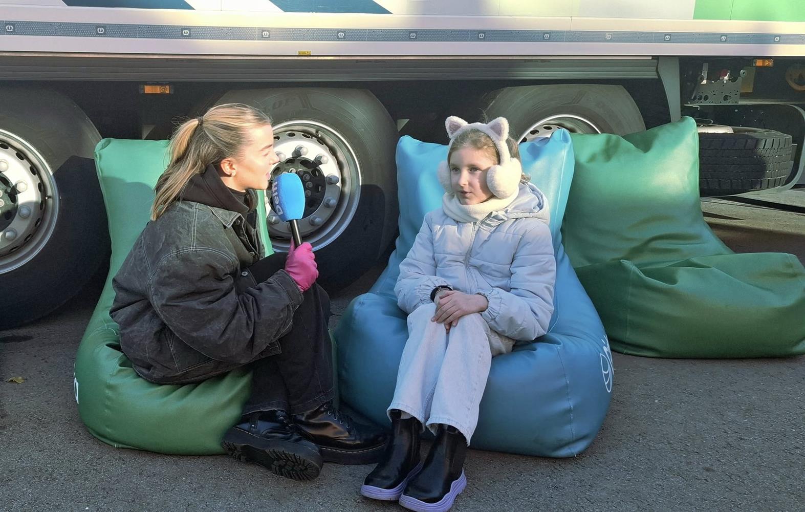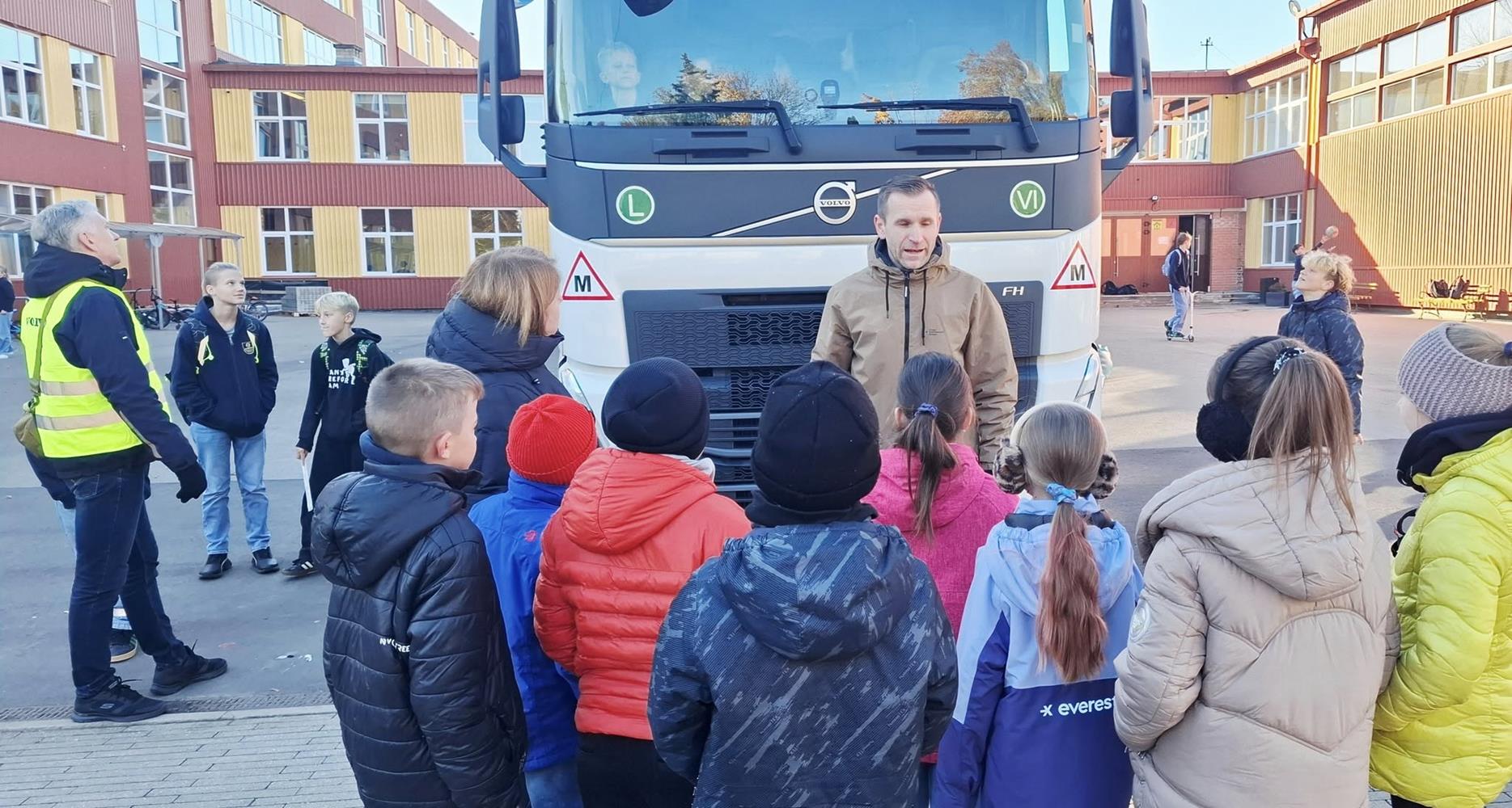 Vaikai turėjo puikią progą pabendrauti su „Girtekos“ vairuotojų mokymų komandos vadovais, įlipti į tikrą vilkiką, atsisėsti prie jo vairo ir asmeniškai įsitikinti, kiek daug „aklųjų zonų“ (erdvių, kurių nemato vairuotojas) iš tiesų turi ši milžiniška mašina.