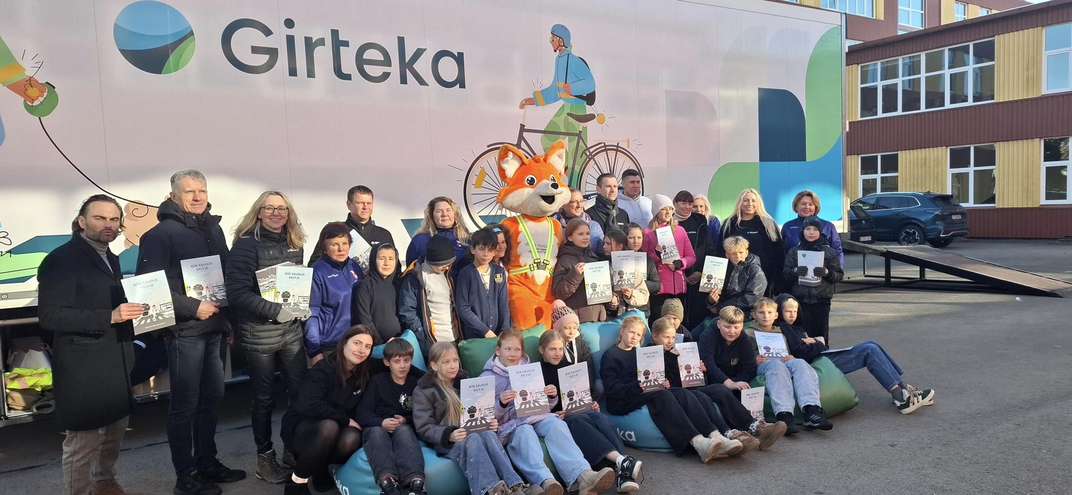 Nuoširdžiai dėkojame už puikią socialinę iniciatyvą ne tik „Girtekai“, bet ir švietimo programai „Renkuosi mokyti“, žaismingas edukacines veiklas apie kelio ženklus vykdžiusiai VŠĮ „Būk saugus LT“, su vaikais bendravusiam, padėjusiam, gerą nuotaiką kūrusiam įspūdingam Lapės personažui.