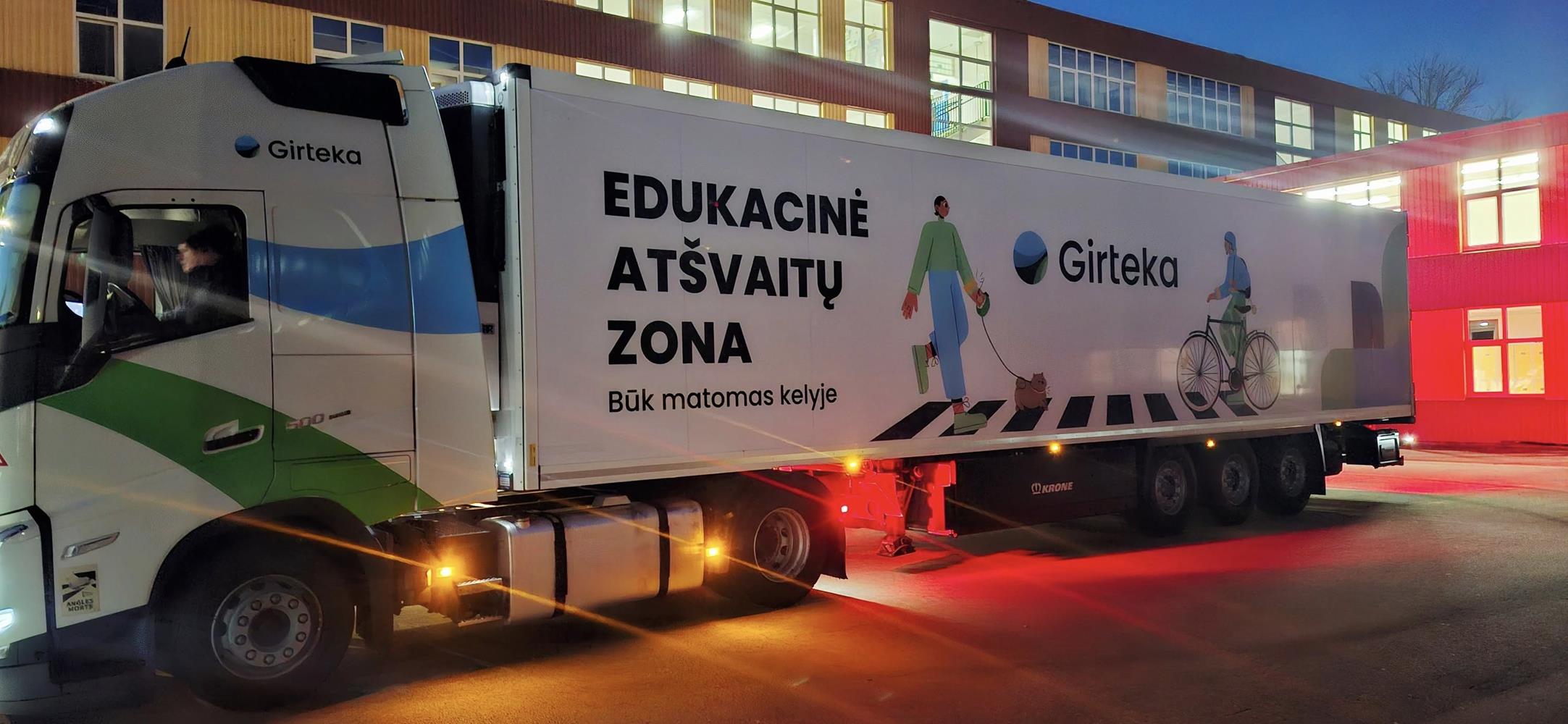 Šis „karavanas“ – tai didžiausios Europoje vilkikų parką valdančios „Girtekos“ įmonės inicijuota socialinė iniciatyva „Būk saugus kelyje“, skirta Lietuvos mokykloms. Jos metu vykstančių interaktyvių užsiėmimų metu ugdomas vaikų ir kitų eismo dalyvių sąmoningumas, edukuojama apie vilkikų „akląsias zonas“ ir saugų elgesį kelyje.