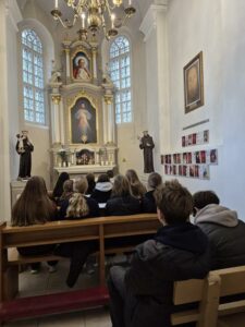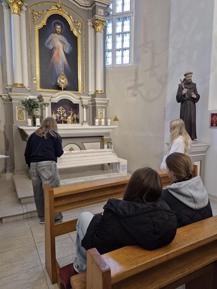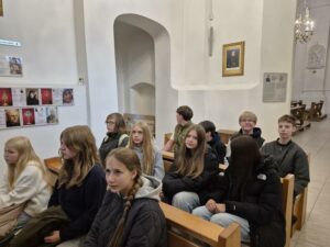 2025 m. spalio 6 d. tikybos pamokos 4, 7 ir 8 klasių mokiniams vyko Šiaulių Šv. apaštalų Petro ir Pauliaus katedros Gailestingumo koplyčioje. Čia juventiečiai tradiciškai dalyvavo Tarptautinėje vaikų ir jaunimo Švč. Sakramento Adoracijoje.