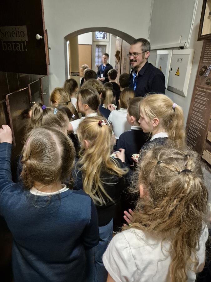 muziejaus gidas. Jis supažindino vaikus su garsiu odininku Chaimu Frenkeliu. Paskui vaikus nuvedė į dirbtuves, kur mokiniai iš odos gamino kalėdinį žaisliuką.