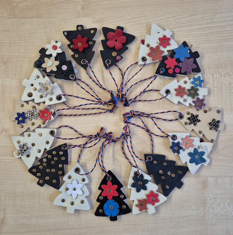Darbas buvo labai įdomus. Pirmiausiai reikėjo staklėmis iš odos išpjauti eglutes. Po to jas suklijuoti ir įvairiai dekoruoti. Darbas plaktukais kaukšint buvo lyg muzika. Kiekvienas dirbo kūrybiškai…